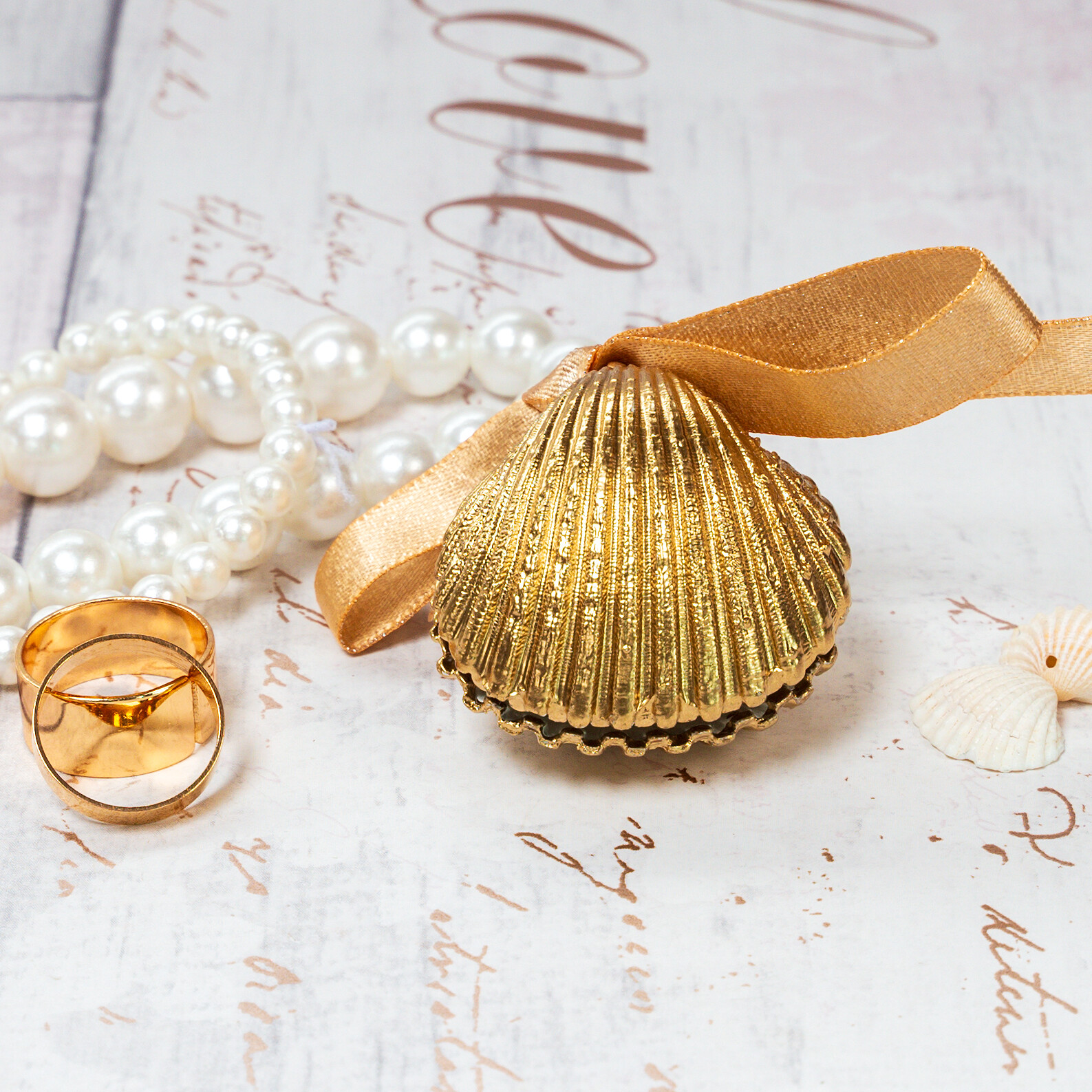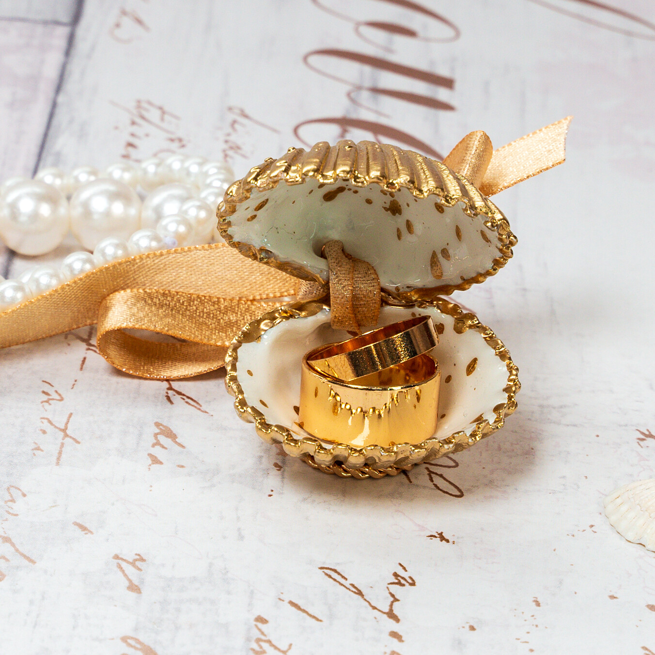Small and dainty seashell shell ring box for decorative ring storage, weddings, proposals and engagements.
