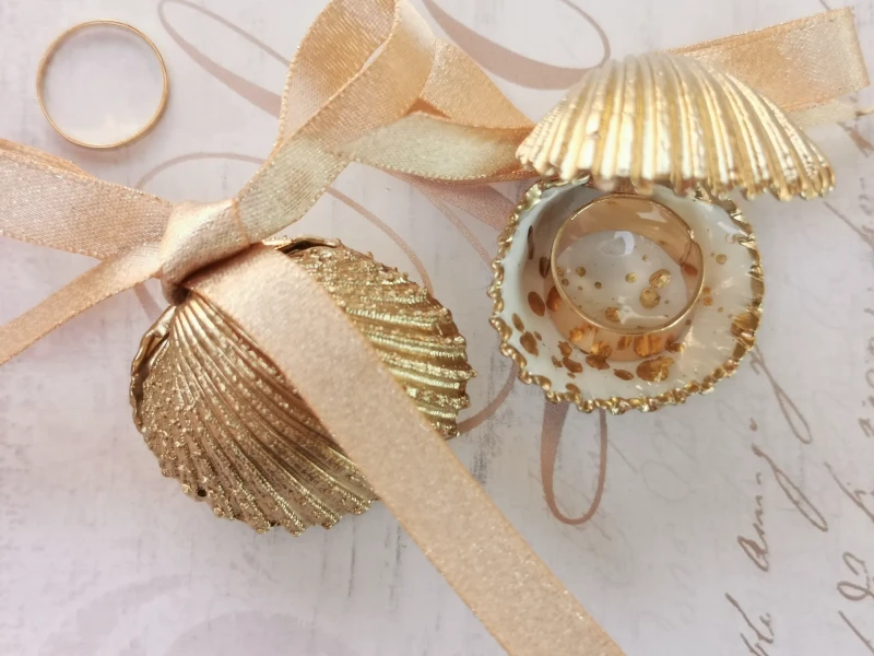 Small and dainty seashell shell ringbox for decorative ring storage, weddings, proposals and engagements.