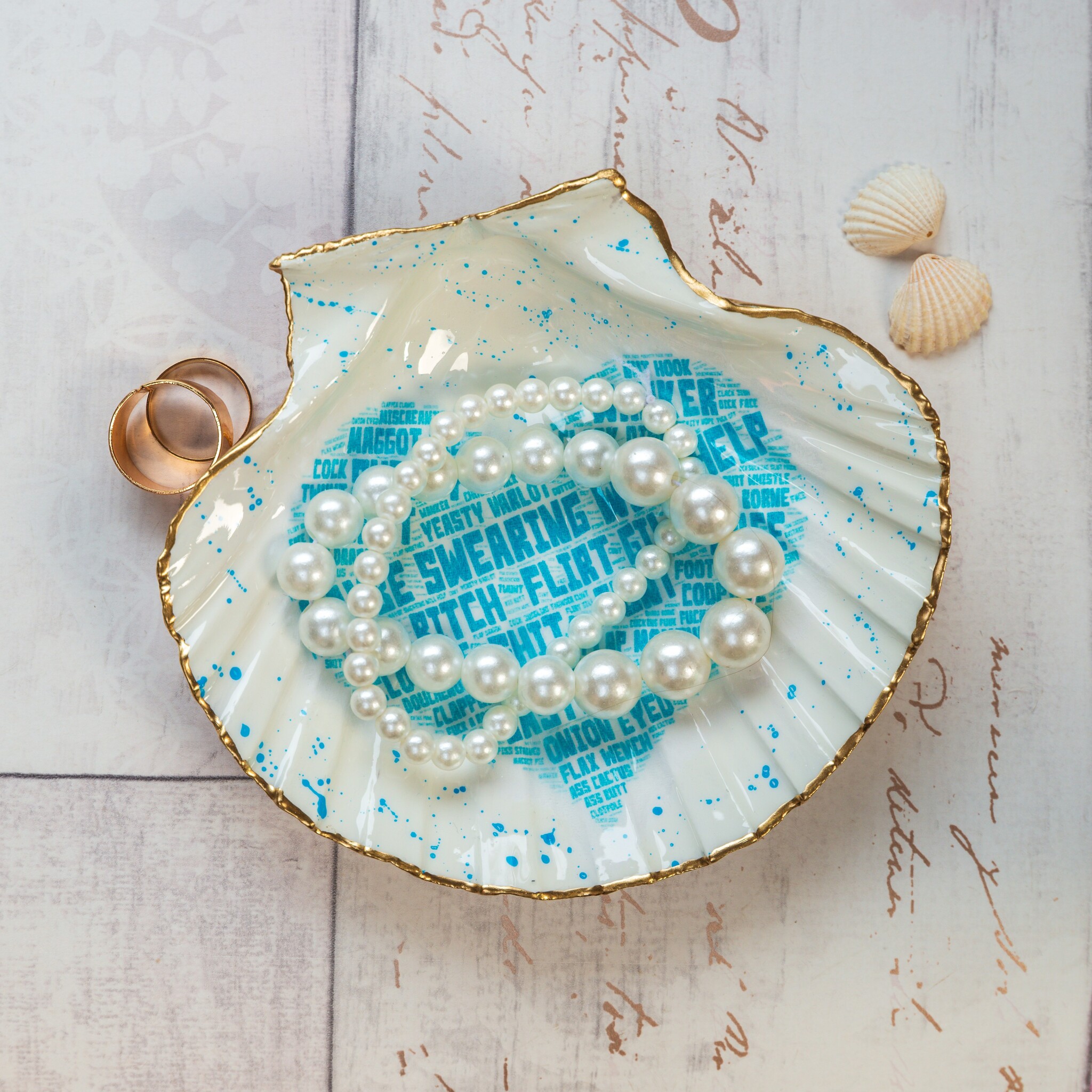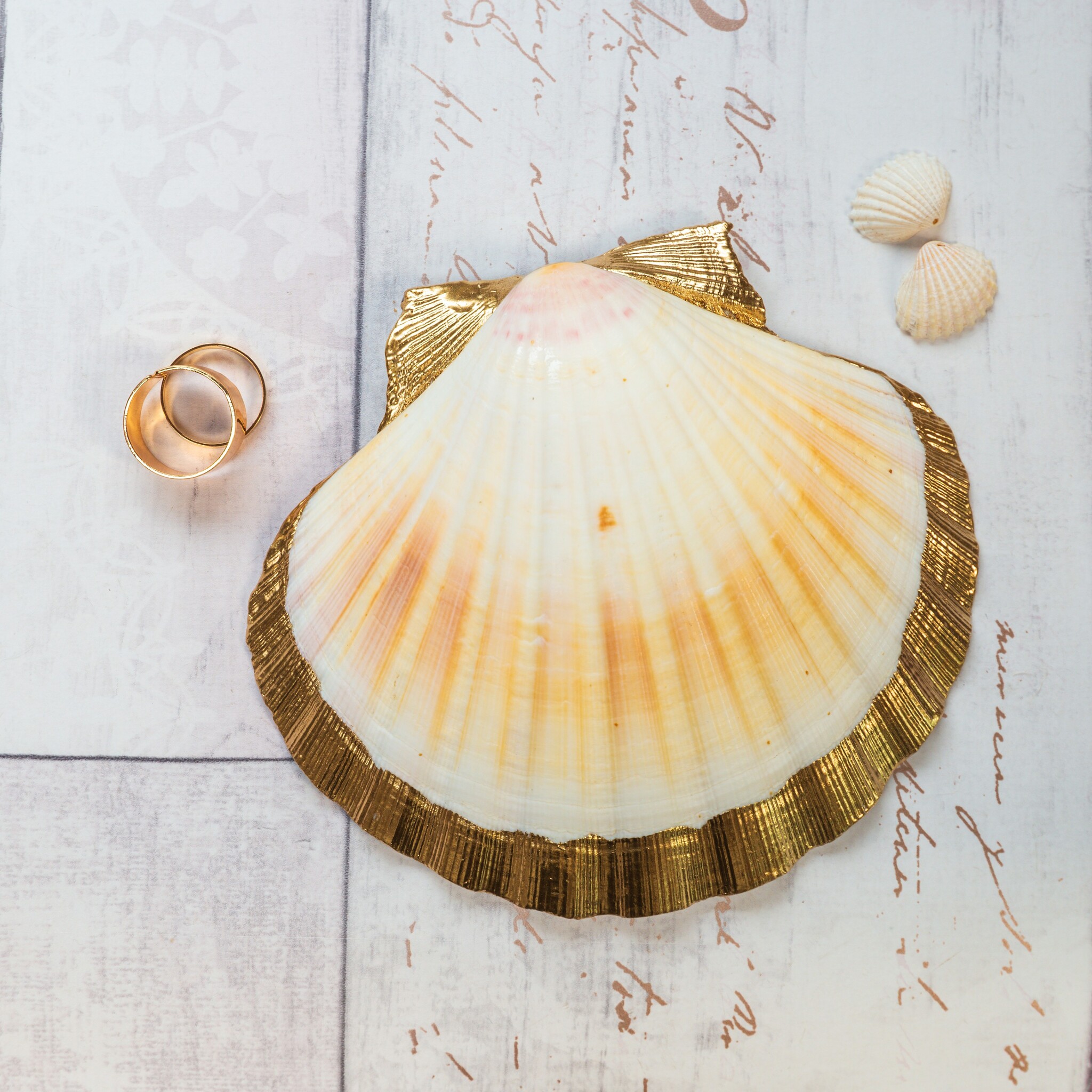 This trinket dish measures 12.5 cm across and is finished in a glossy resin. The edges are gilded with gold leaf.