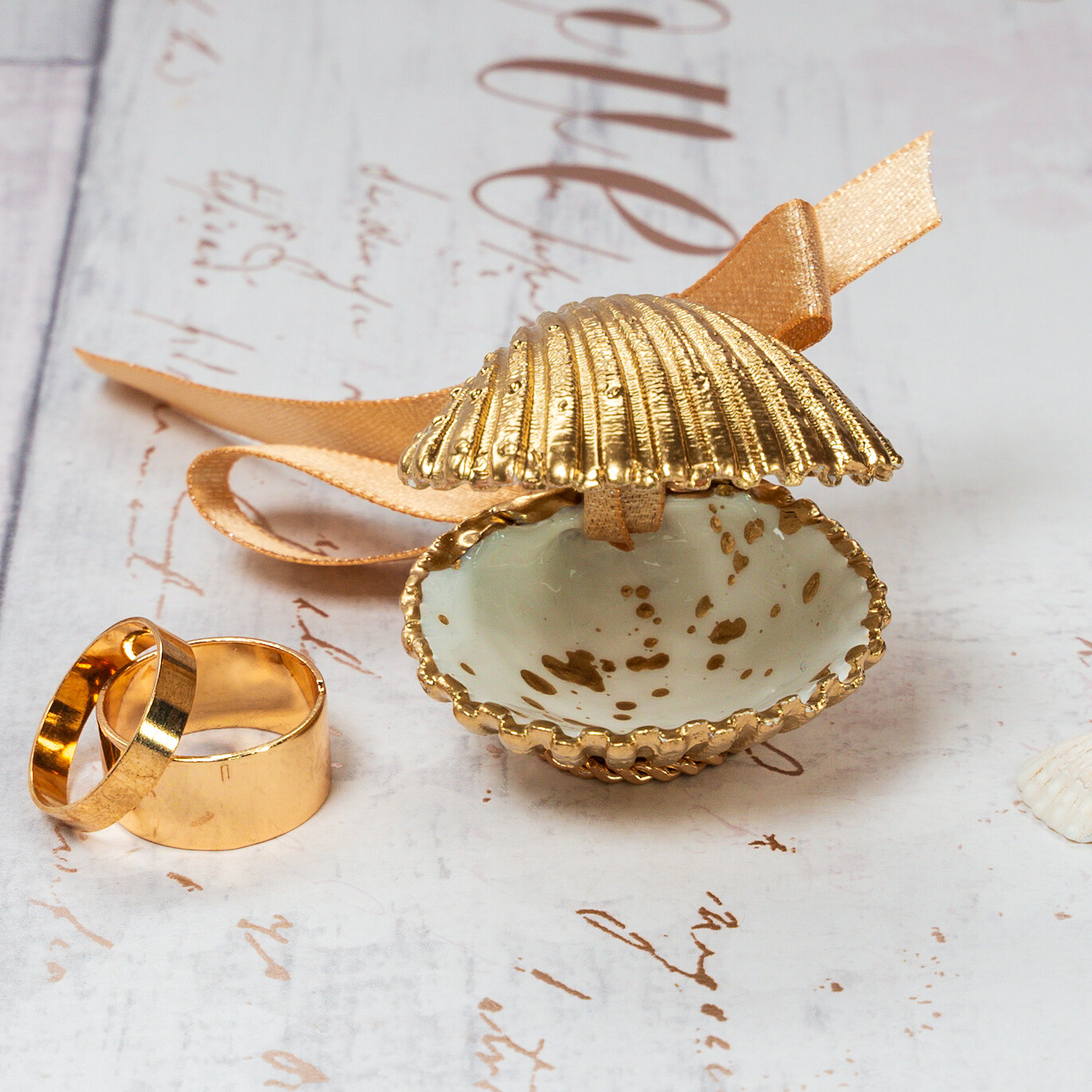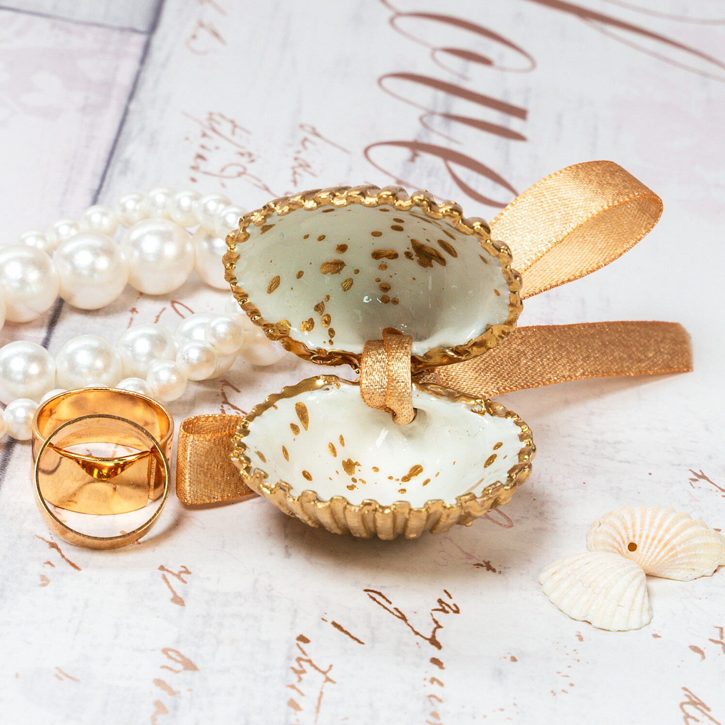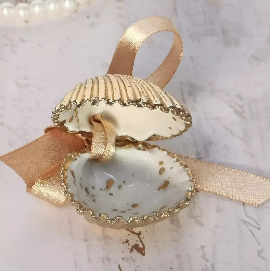 Small and dainty seashell shell ring box for decorative ring storage, weddings, proposals and engagements.